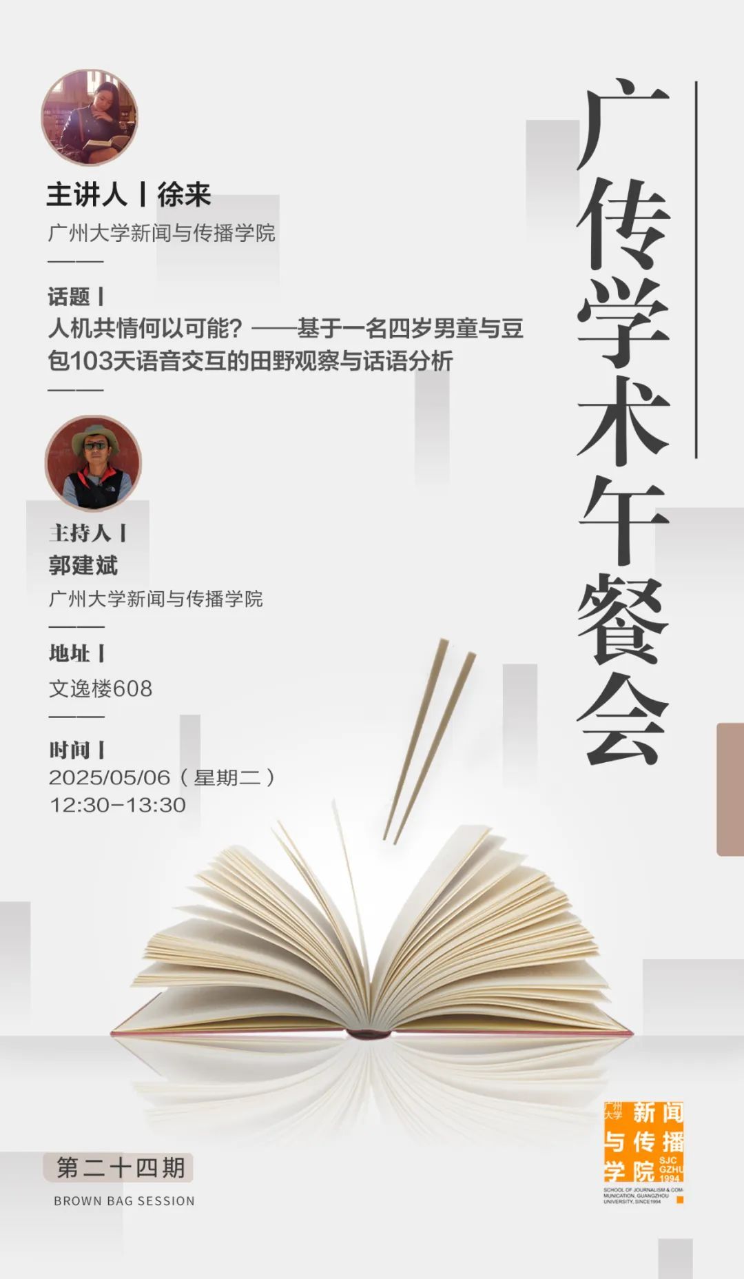 广传学术午餐会预告 | 徐来:人机共情何以可能?——基于一名四岁男童与豆包103天语音交互的田野观察与话语分析