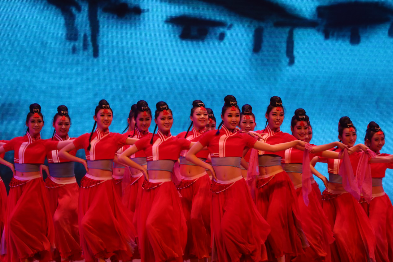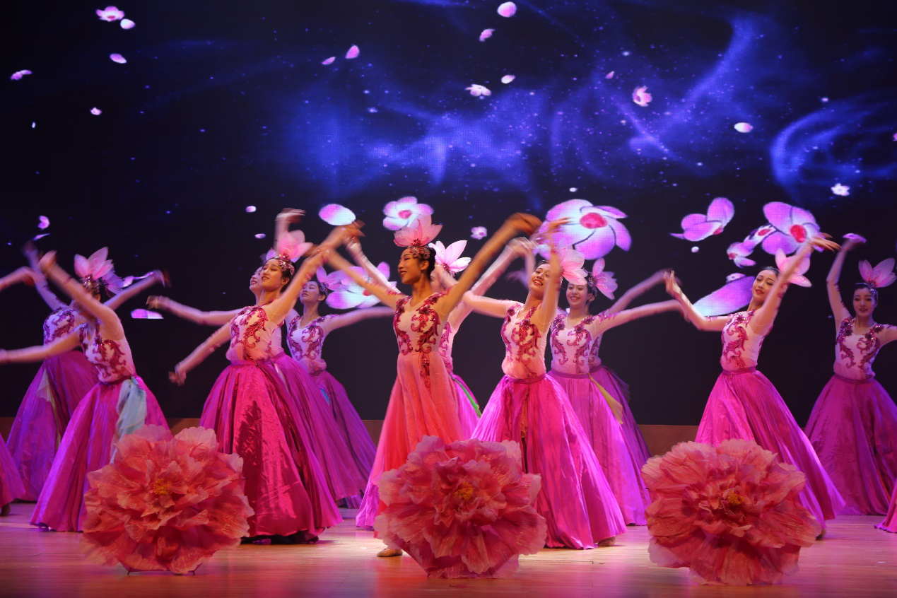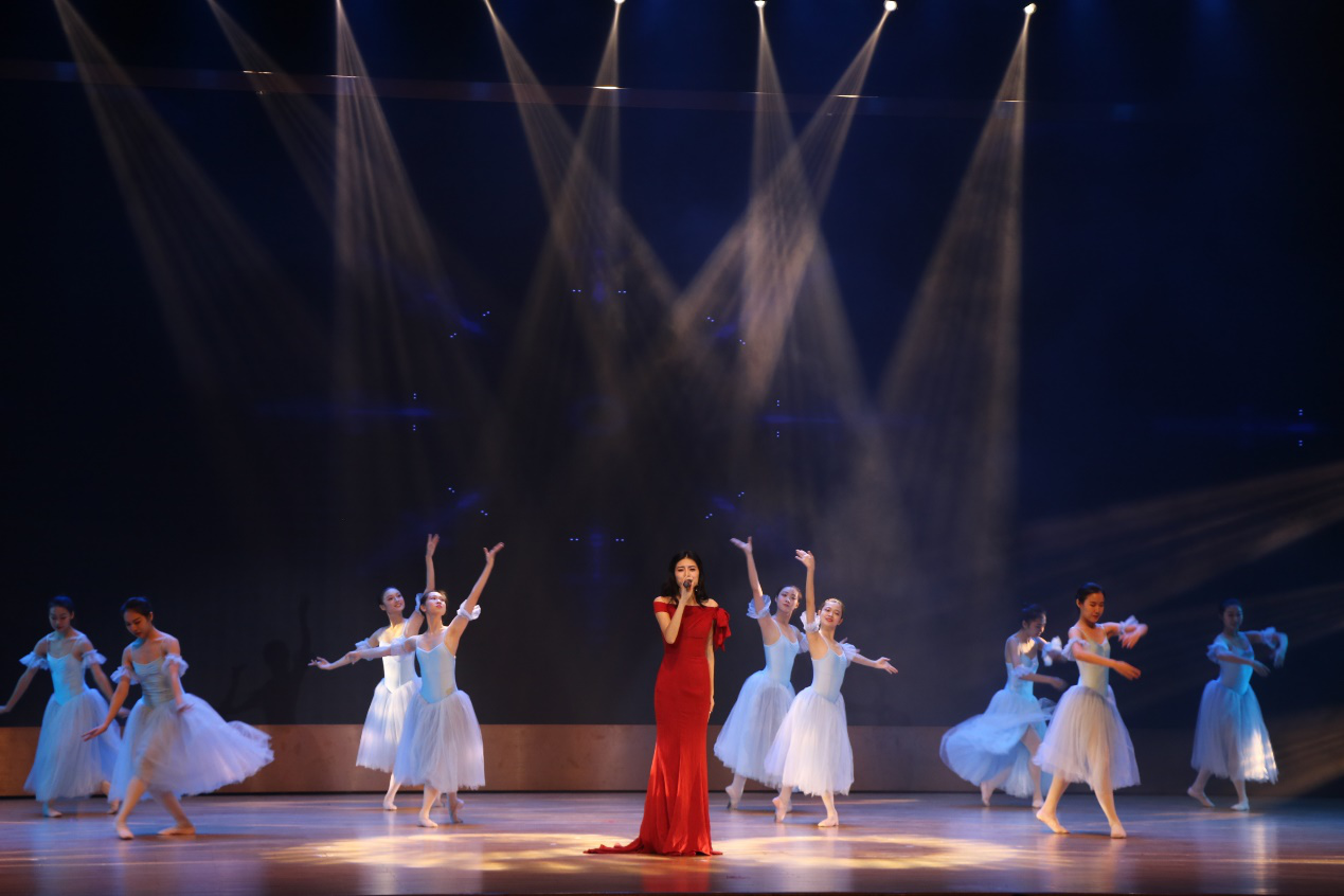 音乐舞蹈学院学生舞团的芭蕾表演相得益彰,踏着音乐的节拍,舞蹈演员翩翩起舞,步履轻盈。