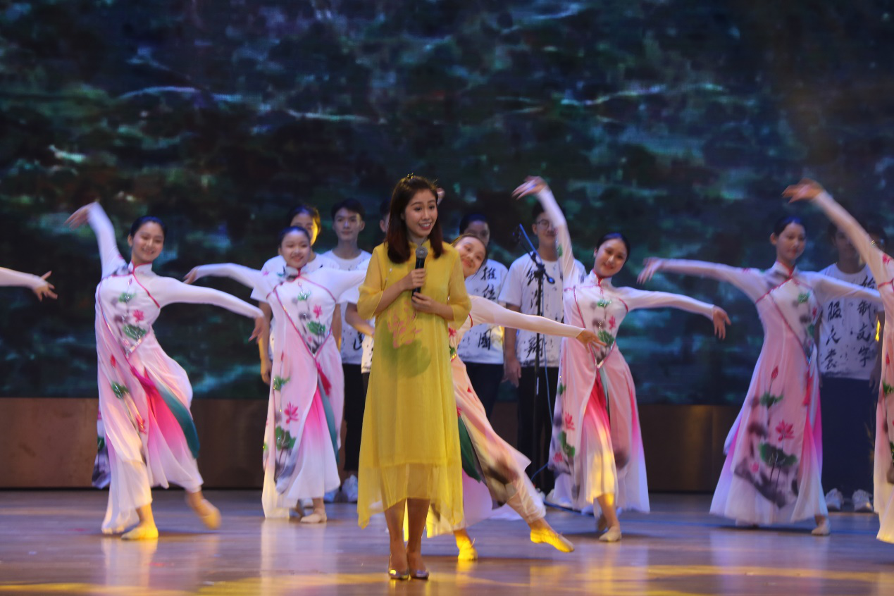 、音乐舞蹈学院的师生为观众带来音舞诗画《四季读书乐》。从《千字文》到《大学》,从读书乐趣谈到四季变化,再加上粤语与普通话交替运用,富有特色的节目呈现了广大师生昂扬向上的精神风貌。