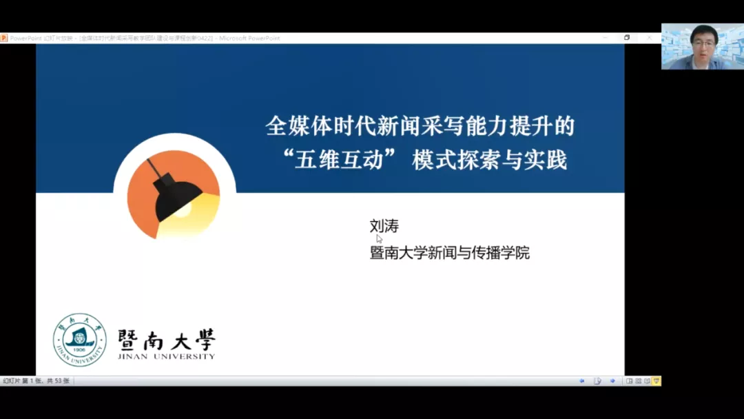 副院长刘涛教授,则立足于学院的新闻采写教学团队,分享了自己对全媒体时代一流课程建设模式的探索与实践。面对着媒体融合大趋势和迈向全媒体传播时代的“外因”,和卓越-拔尖计2.0和新文科建设宣言的“内因”,在聚焦传统媒体和兼顾新兴媒体的基础上,团队的教学内容主动求变,打造以学生发展为中心的教学体系,最终在课堂教学、课程创新和团队建设三个层面有所收获。
