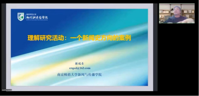,在线为广大师生做了题为《理解研究活动:一个新闻史方向的案例》的学术讲座。他以自己的论文《近代企业管理与日常生活中职员的报刊阅读——以浙江兴业银行为个案》为例,从四大方面展现了一个规范的学术研究的“前世今生”。