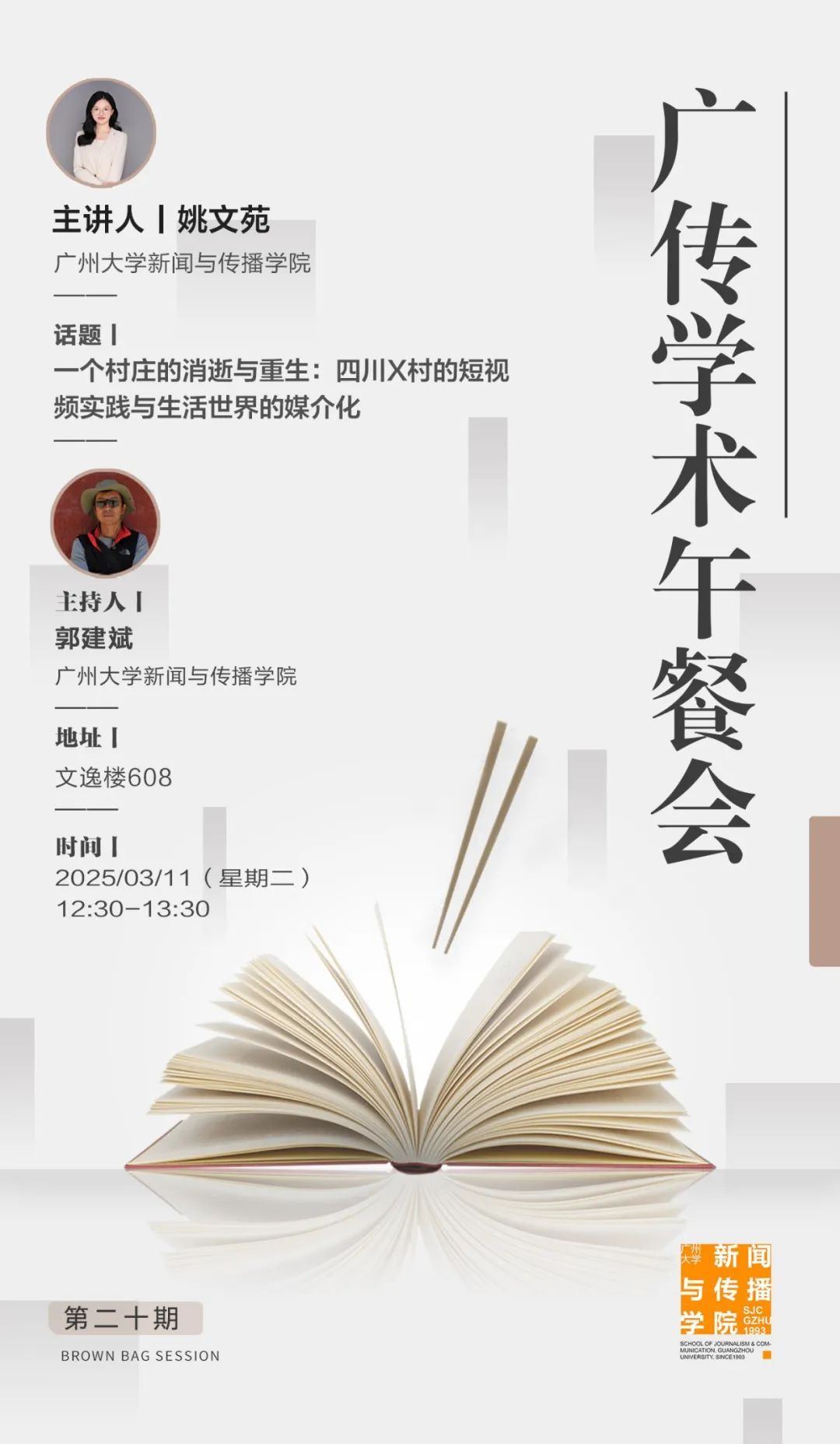 广传学术午餐会预告 | 姚文苑:四川X村的短视频实践与生活世界的媒介化