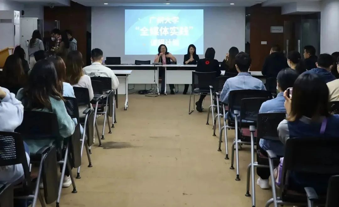 新闻学系系主任李鲤教授面向大三年级学生开设的《全媒体实践》课程联动广州台新媒体团队,开展校企协同育人合作,持续推进实践教学模式改革。