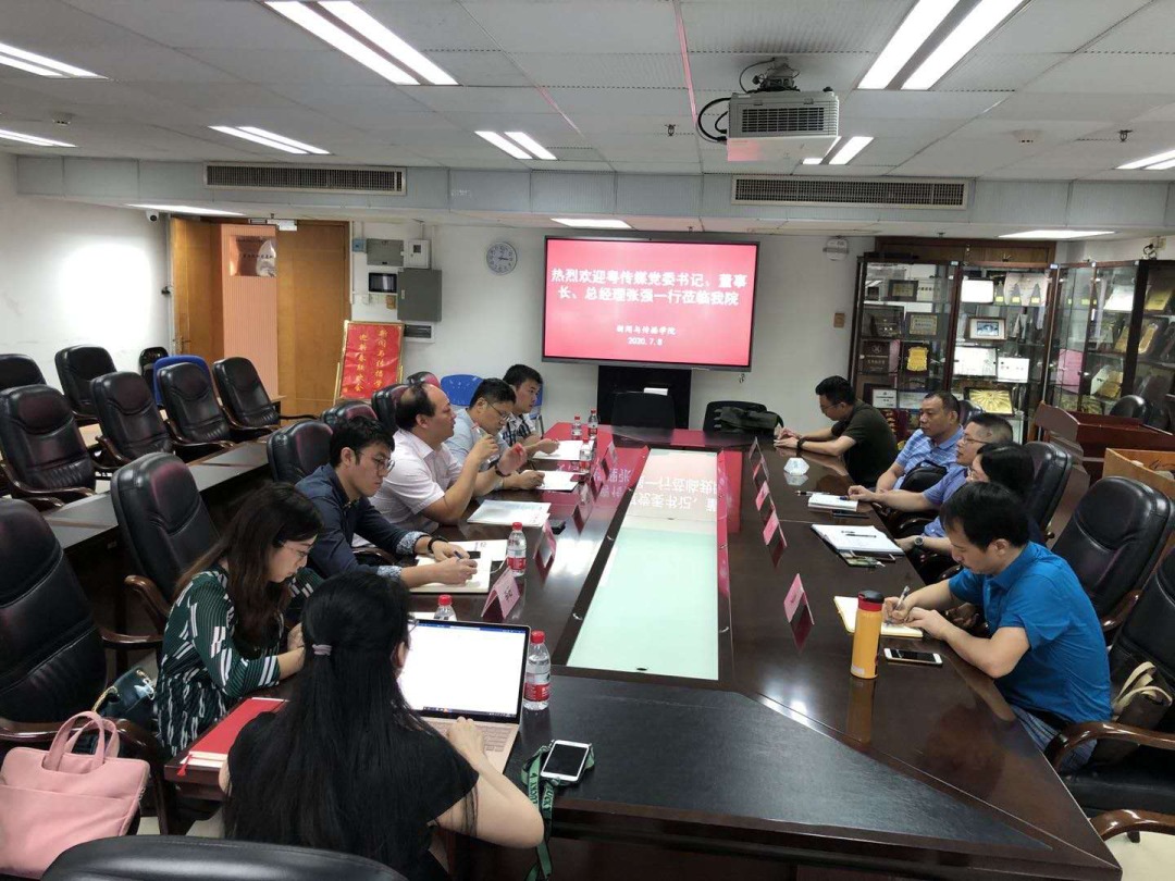7月8日上午,广东广州日报传媒股份有限公司(粤传媒)党委书记、董事长、总经理张强率领公司高级管理人员一行莅临做爱自拍 ,就直播电商人才培养、推进校企合作各项事宜进行调研交流。做爱自拍 田秋生院长、李雁书记、夏清泉副院长、播音与主持艺术系系主任苏凡博、新闻学系副主任刘涛等参与座谈。