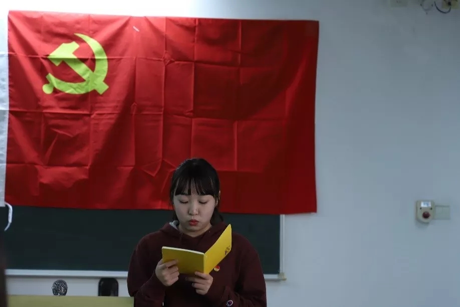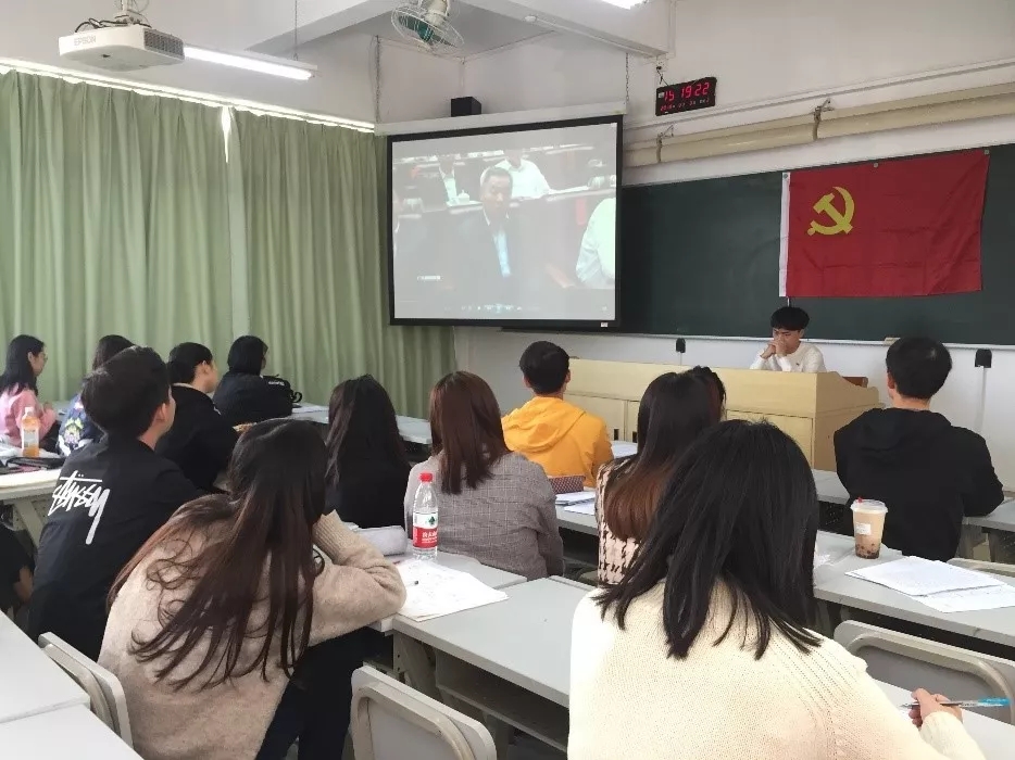 在第一个视频中,由中央电视台特约评论员为我们解读四中全会的公报内容;第二个视频则为广东省政府省委进行的中央宣讲团关于党的十九届四中全会精神在广州召开的一次重要会议。视频观看完毕后,由预备党员进行了学习心得体会的分享。
