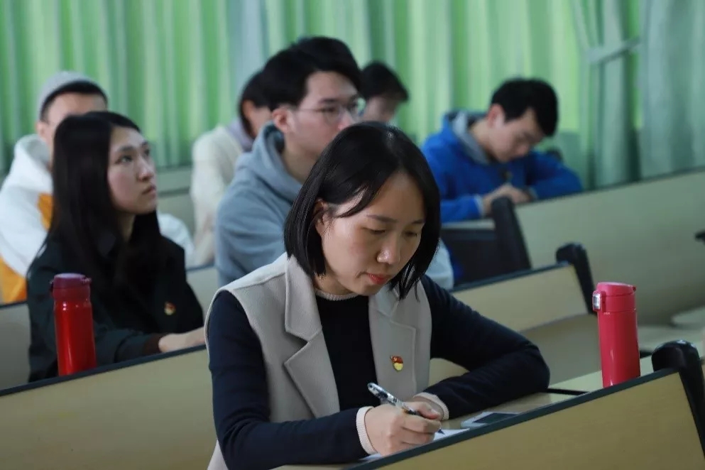 在会议最后,第二党支部副书记谭恩静发表了总结,她从干部层面表达了自己对学习四中全会精神的看法。她认为作为干部,将党和国家意义重大的政策方针传递到群众、基层,让他们能读懂读透是以后可以注意到、也应该去做到的一件事情。同时,她也激励大家多去思考干部的意义是什么,不应忘记的初心是什么,党员的义务是什么这些问题,在日常生活中发挥好自己的带头作用。