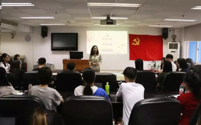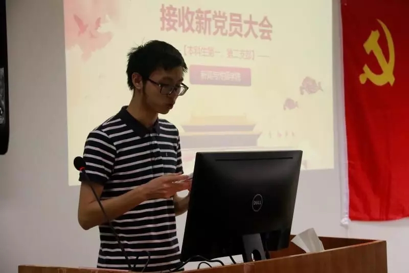 大会开始,由第一党支部的梁颖仪和第二党支部的谭恩静共同通报大会基本情况并宣布大会正式开始。随后全体起立,奏唱国歌。随后各位申请人依次宣读申请书且汇报自身情况,并由入党介绍人介绍申请人的情况。