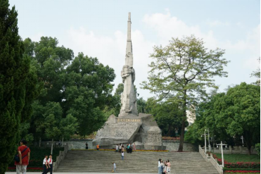 广州起义烈士陵园的道路两旁苍松翠柏、红花吐艳。纪念碑前的气氛庄严肃穆,园内有群众自发前来缅怀先烈。当时中国共产党人和革命群众为反抗国民党反动派的疯狂迫害和屠杀,1927年12月11日凌晨,在当时的中共广东省委书记张太雷以及叶挺、叶剑英、苏兆征、聂荣臻、徐向前领导下,发动了广州起义。崔镛健等150多名朝鲜人和苏联驻广州领事馆人员也参加了起义。由于敌强我弱,起义最终失败,在14日至19日的6天时间里,有5700多名共产党员和革命群众惨遭杀害。