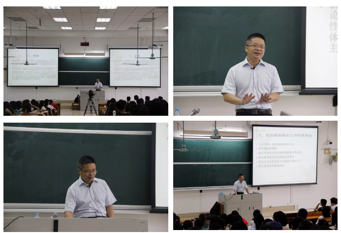党委书记李雁于九月二十五日在文新楼411给新传学院18级广编、播音的全体同学上了一堂学习《习近平新时代中国特色社会主义思想三十讲》的思政课。