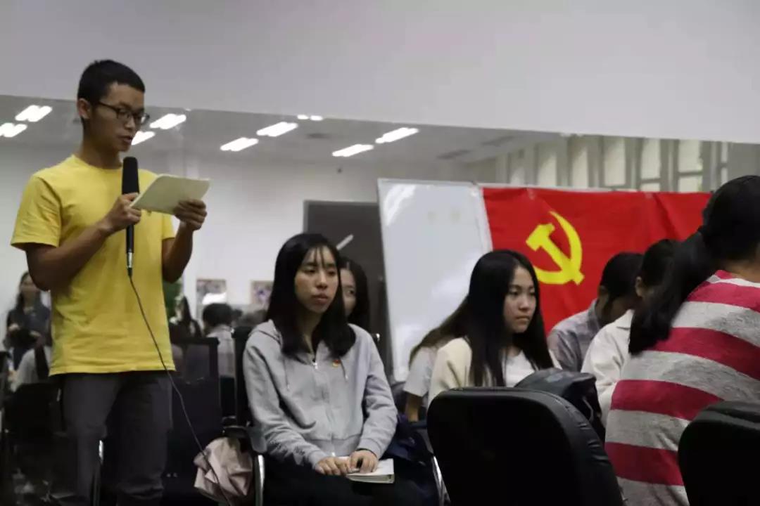 会议的流程主要分为三部分,一是学习习近平总书记十月份在广东视察时的重要讲话;二是学生党员发言,表达自己对于习近平总书记到访广东多地的看法;三是出席会议的书记老师对会议内容进行总结。