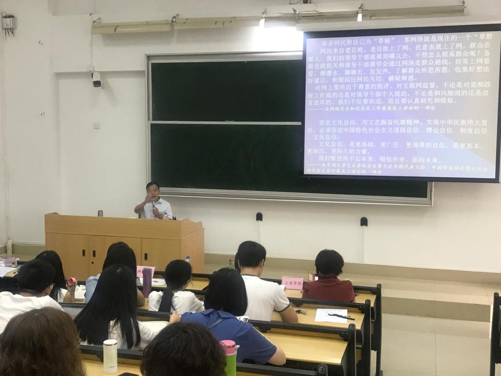 党委与工商管理学院、旅游学院党委在文清楼210课室联合举办党课教育活动,本次党课特别邀请到华南农业大学马克思主义学院院长、党史专家张丰清教授做了题为《文化软实力与社会主义核心价值观培育》的专题讲座。会议由工商管理学院党委书记李芬主持,新闻学院党委书记李雁、旅游学院党委书记刘向晖及三个学院的教师和学生党员代表共100余人参加了学习。