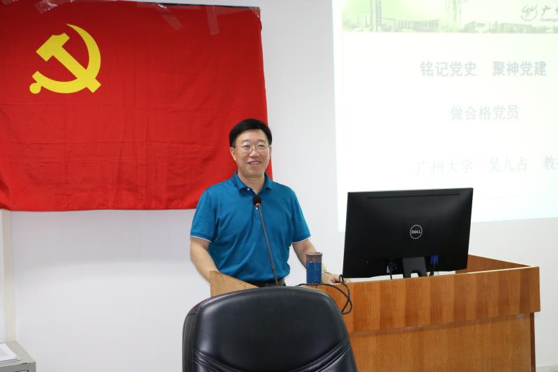 培训开始,吴九占教授以“中国共产党从哪里来,到哪里去”为脉络,回顾了中国共产党的历史沿革,并运用大量史实资料,声情并茂地介绍了中国共产党从建党到发展过程中的重要事件,展现了中国共产党的光辉历程,最后勉励大家发挥党员的先锋模范作用,在自己的岗位上兢兢业业,按照党章要求努力工作。讲座内容饱满充实、深入浅出,让与会人员充分了解到中国共产党的历史以及作为党员的历史使命。