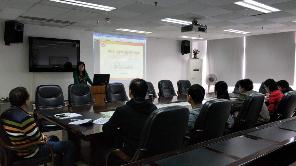 12月5日下午,行政党支部在学院会议室上了一堂生动活泼又深刻的党课,学院党委书记李雁同志以学校暑期组织的井冈山学习活动记录为载体作分享。李书记介绍道,暑期井冈山学习活动是一次情景体验式的学习,参加学习的党员从一进入基地就穿上当年革命军的服装,学习党史、党章和最新的十九大精神,真正体验“军人”的感觉。除了理论课之外,这次学习还组织了重登“革命路”、自制餐食等活动,使党员们更切身体会到革命之艰苦与革命果实的来之不易。李书记说,我们应当牢记习近平总书记的教诲,无论走得多远,都不忘却初心。