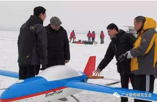 图为2013年1月20日,黄大年(左二)及团队成员在极寒天气下进行固定翼无人机试飞