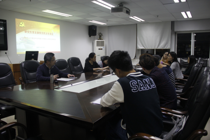2016级研究生党支部在B14二楼党团活动室开展党员专题组织生活会。 会上,每位党员围绕“在高水平大学建设中如何履行好新闻人的责任和担当”这一主题展开深刻的讨论和发言。李雁书记在听取各位党员的发言后,向各位党员同志介绍了学院发展的思路与规划,并结合自身工作经历以及相关书籍,告诉在场每一位党员要认真对待每一项工作。同时,李书记认为研究生党员应该要对自己有更高的要求,要在学生中起带头模范作用。