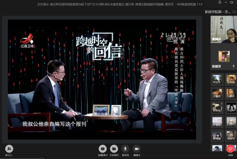 张丽芬书记也对此次生活会进行总结,对同学们能够结合文本和疫情现实情况谈红色文化,并把历史和当下很好的融合起来表示了赞赏。同时,张丽芬老师向同学们提出了期望和要求,希望同学们能够在平时的生活中多关注历史人物、优秀影片,并从中发掘出对红色文化的阐释。居家“云上课”的同时也不要忘记多读历史、读原著、欣赏优秀影片,激励自己不断前进。