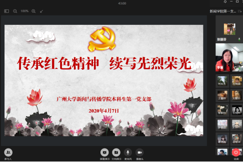 本科生第一党支部开展了本学期第二次组织生活会。本次组织生活会围绕着“传承红色精神 续写先烈荣光”的主题展开,通过企业微信线上会议的形式,学院党委书记李雁、本科生第一党支部书记张丽芬,以及该党支部30位学生党员共同参与本次会议。