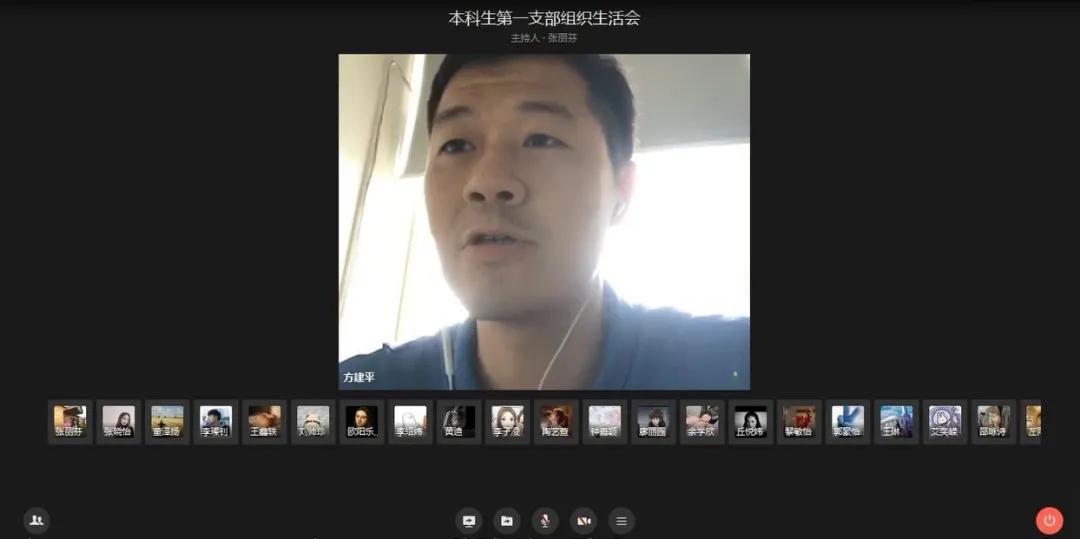 本科生第一党支部通过企业微信视频会议的形式开展了本学期第三次组织生活会。本次生活会以“学先进学劳模,做新时代奋斗者”为主题进行分享和探讨,学院党委副书记方建平老师出席本次会议并发表讲话。