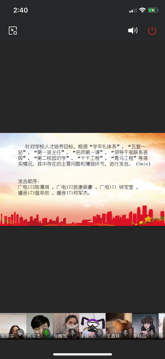 广电171班钟宝莹在学校的“学年礼”问题上借康振豪同学的发言提到,学年礼的频率相对较低,在宣传方面尚有提升空间,需要让更多的同学有对学年礼的“参与感”。