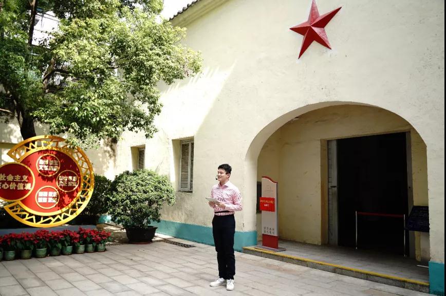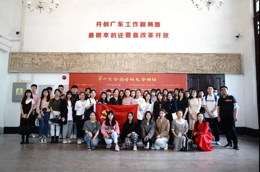 在讲解员谭宇洋同学的解说与带领下,党支部成员与老师参观了第一次全国劳动大会旧址。作为广州市党史教育基地和爱国主义教育基地,这座白色小洋楼最大程度保留了礼堂原貌,旧址开设了《城市之光工运之路——1840-1927年广州工人运动纪实》展览,将中国工人运动的不同阶段,通过展出照片、物品等珍贵史料,向人们生动再现,让人们学习那段具有重大意义的历史。