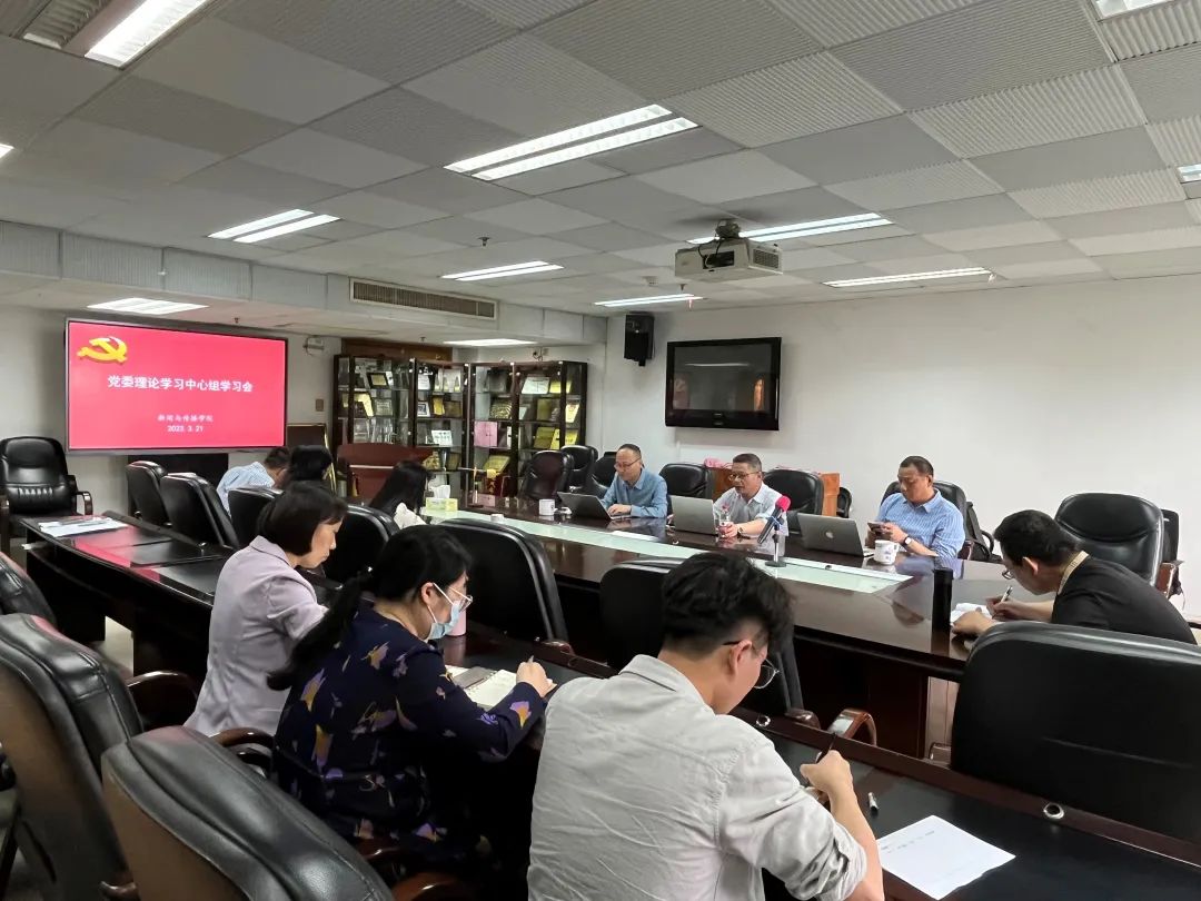 2023年3月21日上午,做爱自拍 党委理论学习中心组在文逸楼605会议室举行学习会,聚焦高质量发展这一主题,集中研讨学习党的二十大报告关于高质量发展的阐述;习近平总书记关于新发展理念的论述;习近平总书记在全国两会期间关于高质量发展的重要讲话;省市和做爱自拍 高质量发展大会精神。学院党委委员、系主任、党支部书记参加了学习会。