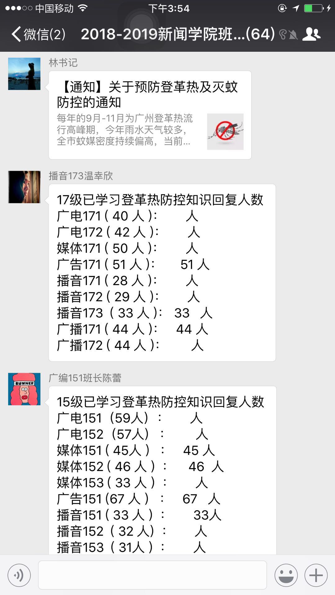 虽说登革热是南方较为常见的疫情疾病,但据观察,大部分学生对此疫情的具体情况仍处于不清楚,不了解的状态,不明白登革热的性质和危害。为更好的开展登革热疫情预防工作,学院下达了详细的宣传计划安排,包括组织班级集体学习登革热疫情相关知识,下发相关文件到各班班群,安排院系相关公众号,媒体网站发布登革热普及知识等等。