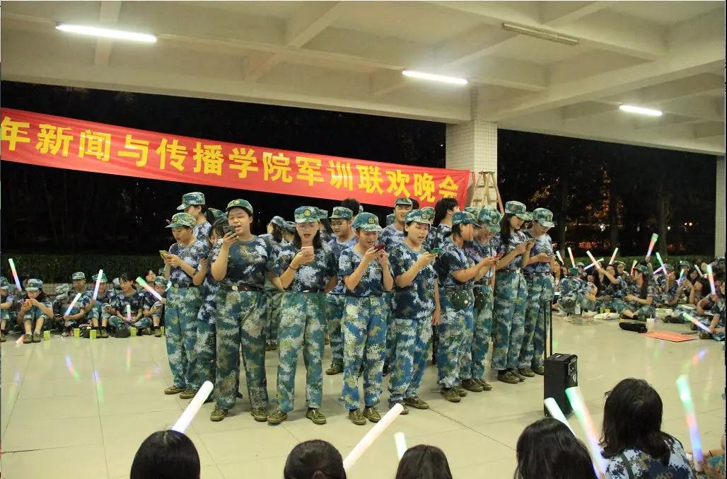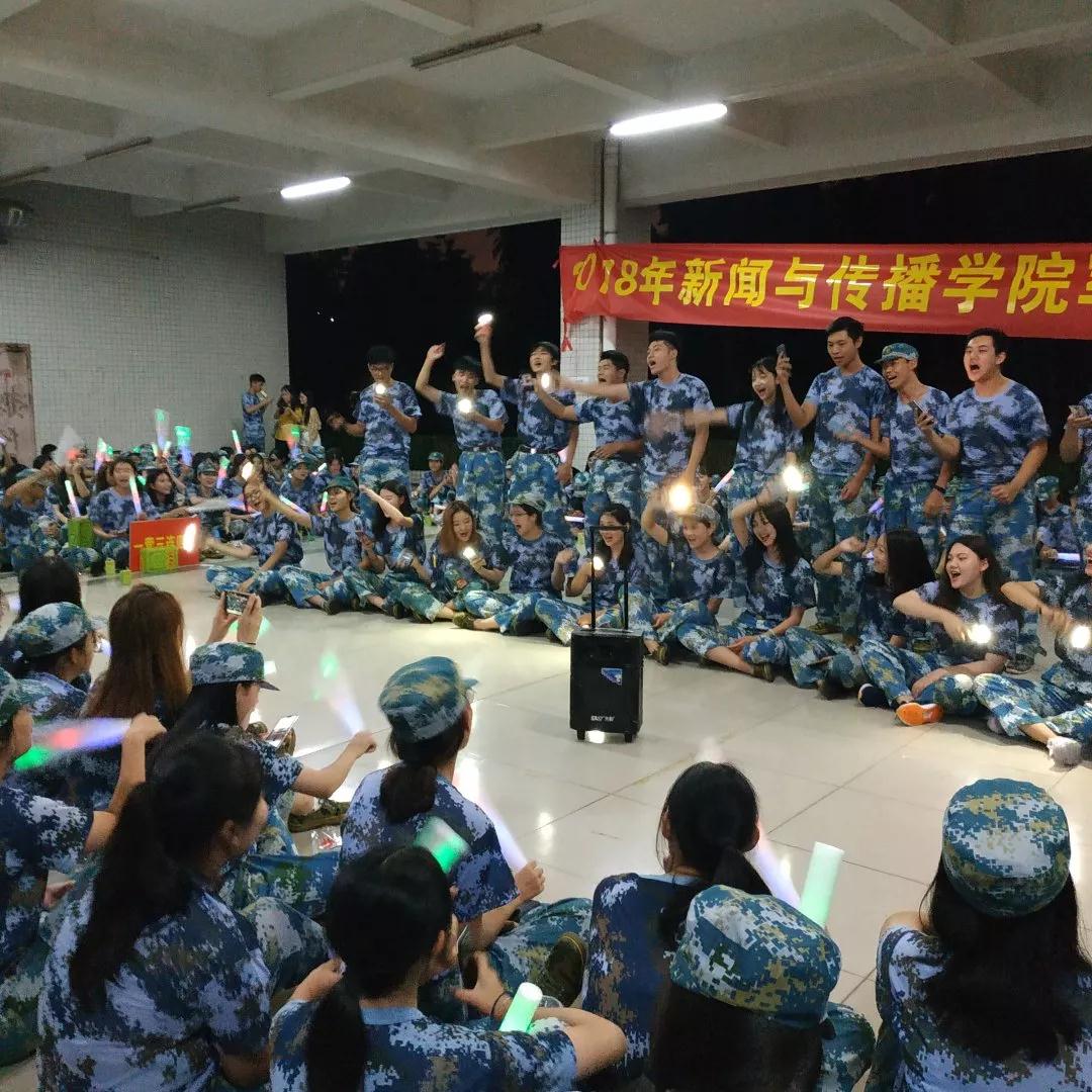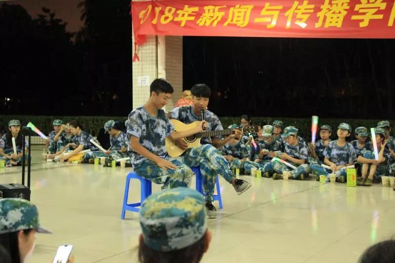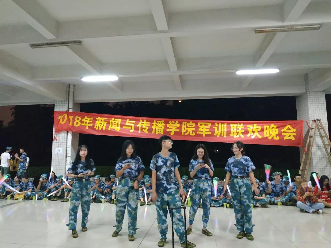 一营三连军训联欢晚会在文俊西楼架空层举行,2018级网媒、广电、播音及广编四系共10个班级约350名新生参加,另外到场的还有各班导生以及本营营长、二、三连的连长。