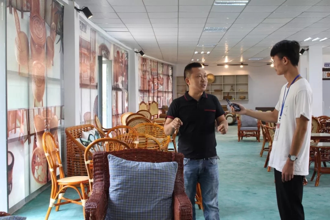 实践队员了解到,该公司主要生产各种风格的藤艺家具,家具的生产要经过骨架编制、打磨、修饰、上漆等工序。为了防止虫蛀,在生产时工人会首先对藤条进行高温蒸熟处理,经过处理的材料编制而成的家具,耐用期可以达到二十年。目前,公司的产品主要销往广东与江苏,产值1000余万元。