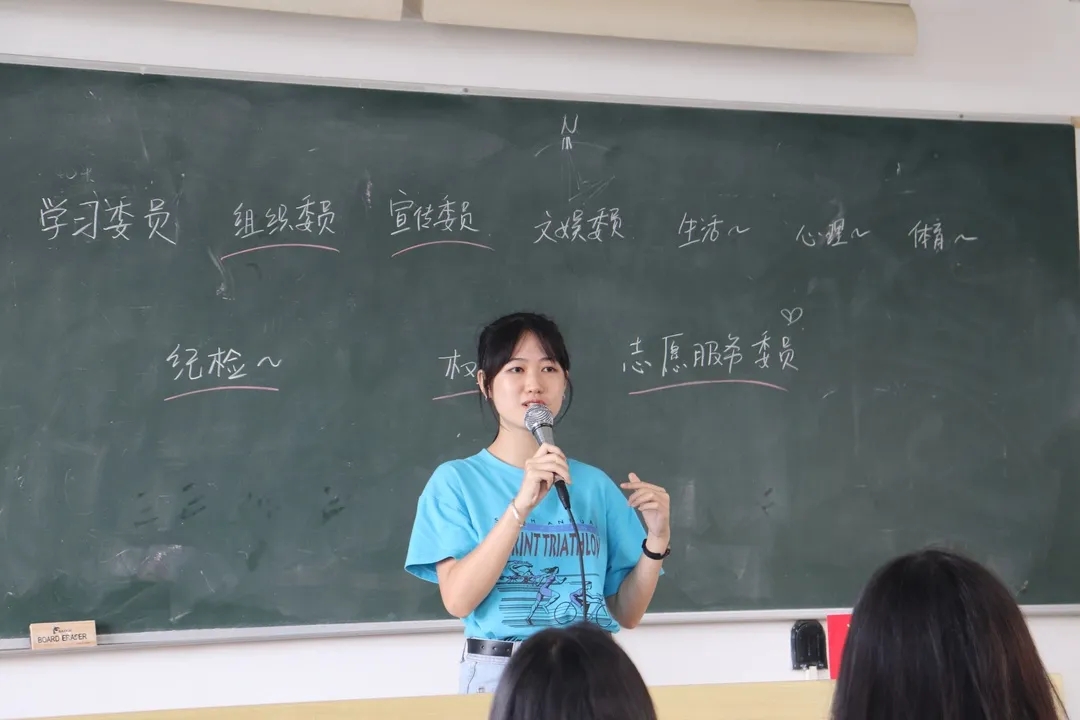 紧接着便进入了新生班会的环节,我们去到了一些班级的班会现场,他们中有的正在开展同学自我介绍,进行着第一次的班级破冰;有的正在进行老师发言环节,传递出班主任对学生们的期待与祝福。