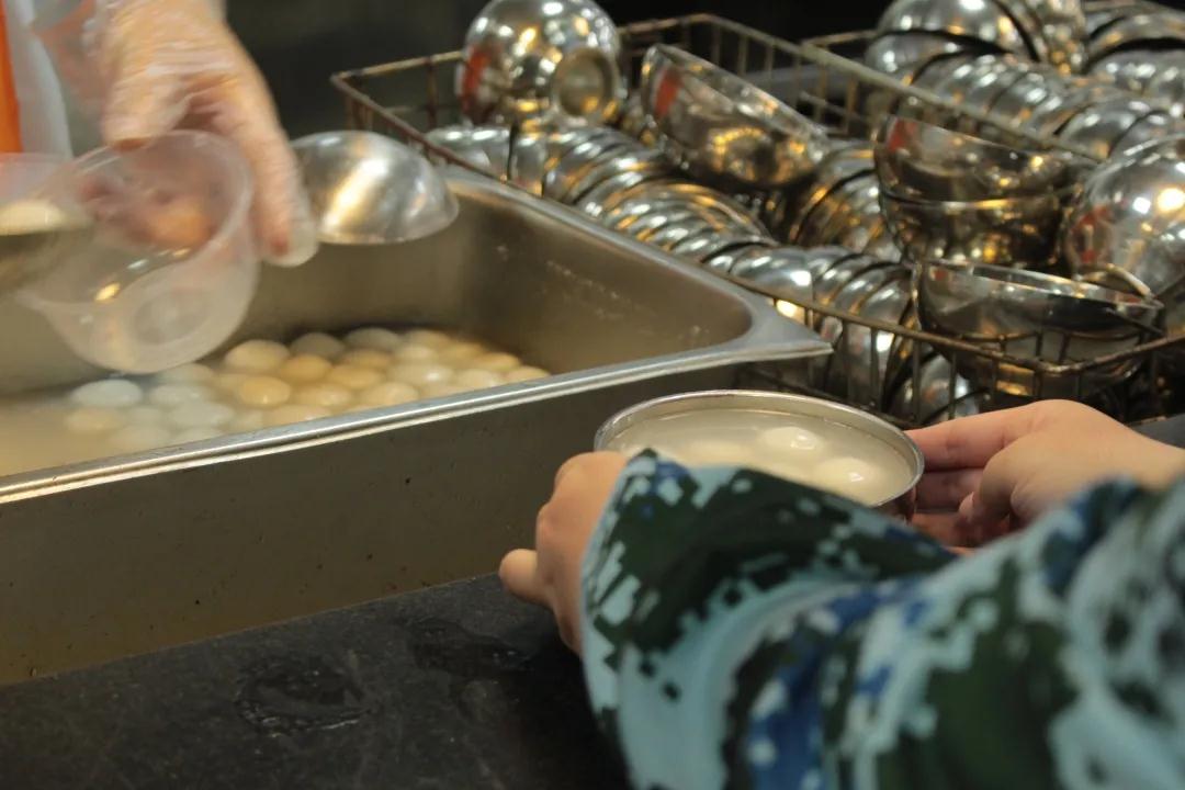 今天,院领导还为新传学子送上免费汤圆的温暖福利,温热的汤圆驱散了冬日的寒冷,为受训学生们带来了训练的动力。