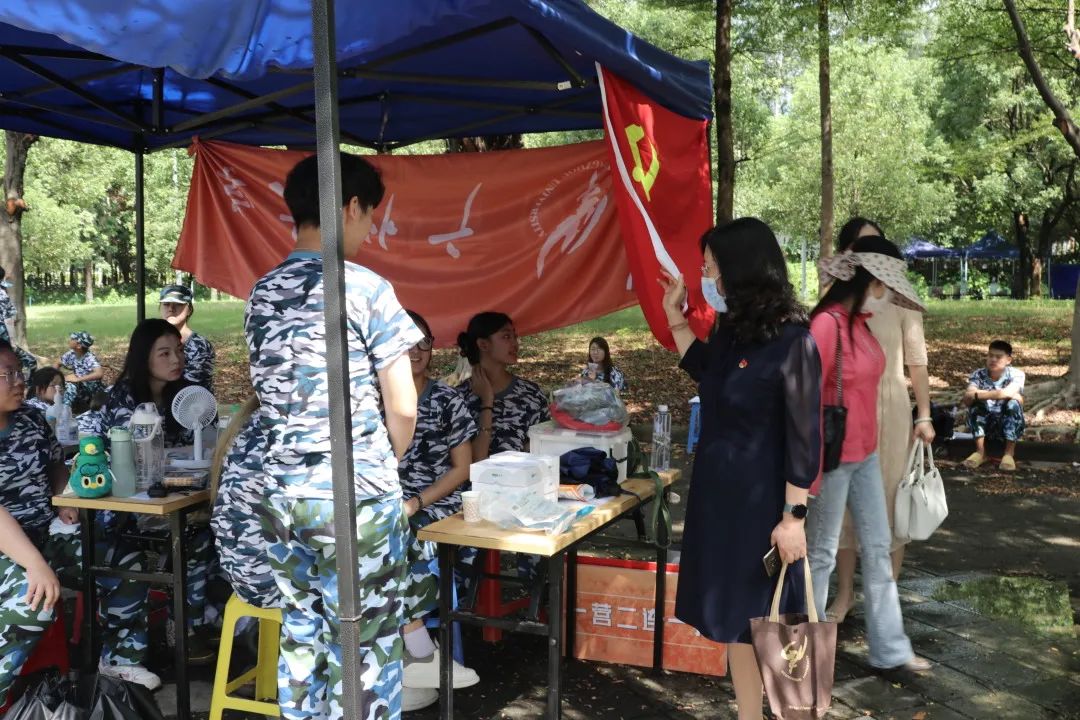 9月9日上午,学院党委书记李雁、党委副书记方建平、新闻学系主任李鲤、副院长张爱凤、播音与主持艺术系主任苏凡博、22级新生班主任方晨、徐来老师以及22级辅导员谭丰云一行人来到新生军训所在地,慰问正在军训的2022级新生和教官。