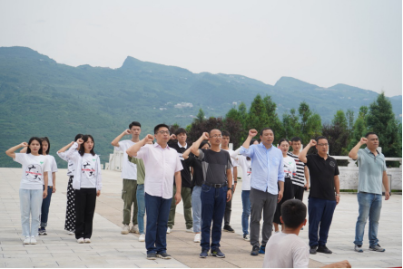 副院长夏清泉、广播电视艺术系主任尹杭、播音与主持艺术系副主任陈智勇,贵州工程应用技术学院人文学院党总支书记周治勇、院长李德虎率领两院联合暑期新闻实践队队员到鸡鸣三省纪念地开展“不忘初心、牢记使命”联合主题党日活动。