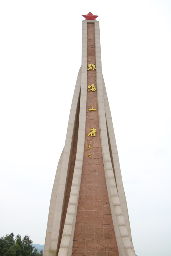 拾阶而上,鸡鸣三省会议纪念碑巍峨耸立。原鸡鸣三省会议纪念碑建于1996年2月5日,碑座高60厘米,寓意红军长征胜利60周年;碑身高3.52米,寓意1935年2月,碑底为圆形,象征着各民族大团结。碑为三面碑,象征云、贵、川三省,侧面的碑铭记述了当年中央红军长征来到鸡鸣三省的大体情况和对纪念碑的说明。2016年12月,毕节市移址扩建鸡鸣三省会议纪念碑,落成于2017年6月的新纪念碑以“旭日东升”为主题形象,是整个景区的地标性建筑。