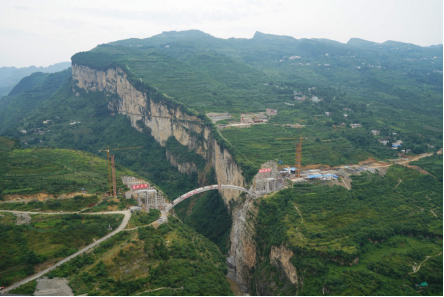 在这里,可以看到今年7月7日主拱圈合龙的鸡鸣三省大桥。据介绍,这处大桥是赤水河流域重要的渡改桥工程,2019年底将建成通车。该桥建成后将解决三省交界一带数十万群众的出行难题,四川叙永县和云南镇雄县两地的通行时间将从2个半小时的车程变为1分钟,有力助推乌蒙山区脱贫攻坚。