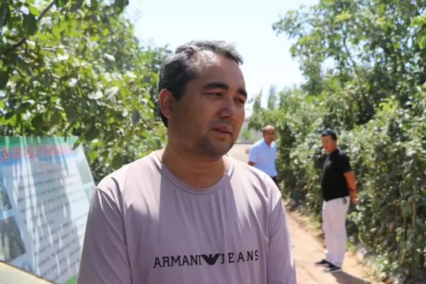 郭秦老师带队,前往疏附县站敏乡2村,由阿乡长带领师生一行来到当地村民小组共同经营的核桃丰产园参观,据乡长介绍,园内180亩核桃树每亩地年平均收入可达约1800元,除此之外,核桃果树下还可以种植小麦和豇豆,每亩年平均收入也可以达到约1500元。随后乡长还带我们参观了乡里种植的巴旦木和红枣,同样长势喜人,巴旦木已成熟等待收割,乡长热情地邀请我们品尝刚从树上摘下的巴旦木,巴旦木果实吃起来脆而清甜,有一股淡淡的香味。
