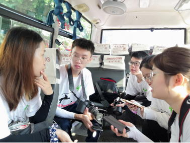学生在车上进行采访讨论    拍摄:刘雪梅