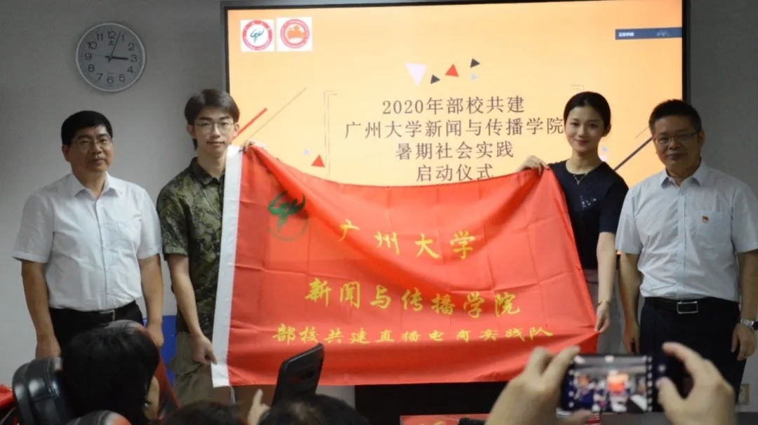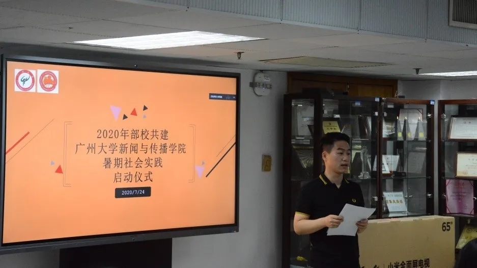 2020暑期新闻扶贫社会实践活动正式拉开序幕。本次启动仪式在文逸楼605设主会场、在609和611通过腾讯会议平台设直播分会场。出席本次启动仪式的领导和嘉宾有广州市委宣传部副部长江永忠、广州市委宣传部新闻处副处长李云;学校纪委书记龚红、学院院长田秋生、党委书记李雁、副院长夏清泉以及参与本次暑期社会实践活动的所有老师和同学。启动仪式由学院党委书记李雁主持。