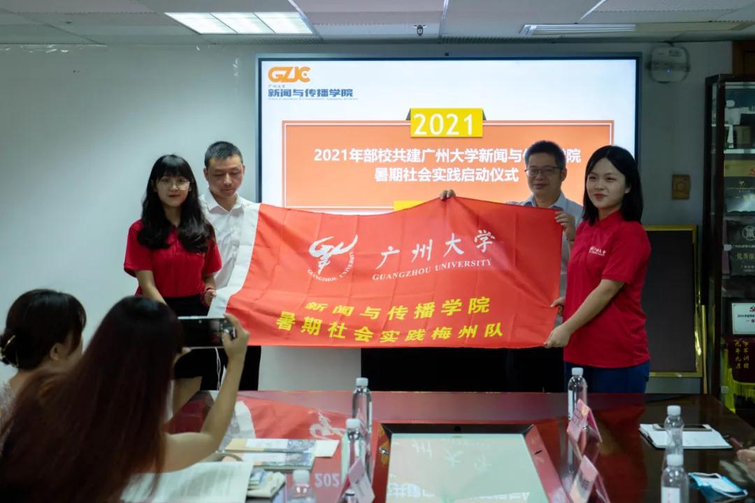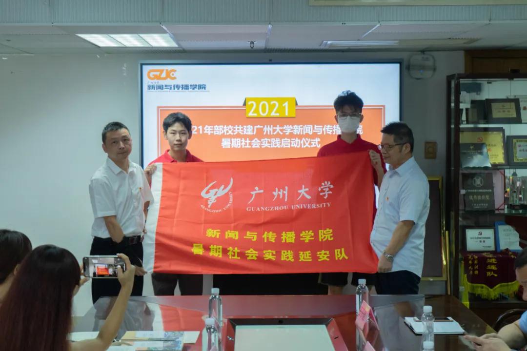 本次暑期社会实践活动的三支队伍:广东梅州实践队、贵州毕节实践队、陕西延安实践队颁发实践队队旗。