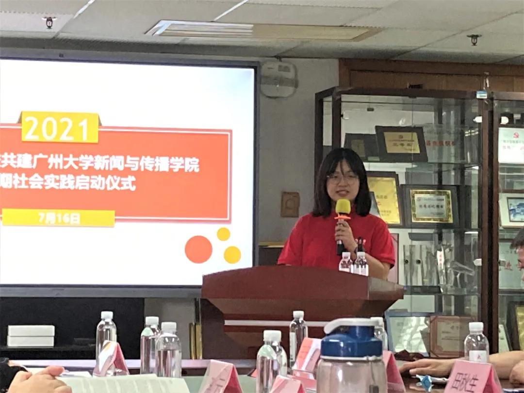 李浩婷结合自身在暑期实践培训中的感受,谈到个人对实践活动的理解。今年恰逢建党一百周年和“十四五“规划开局之年的重要时间节点,她表示作为青年学子,将会充分利用学校、学院给予的平台,以最饱满的热情投入到实践中去,认真记录、用心传播,不断砥砺自我、提高素养,提升自身的责任感和使命感。