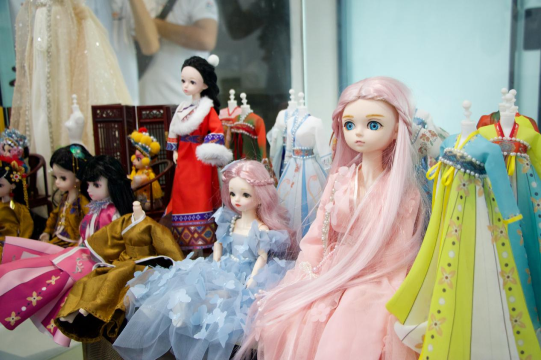 李柏亨先生现场缝制”国潮娃娃“的服装