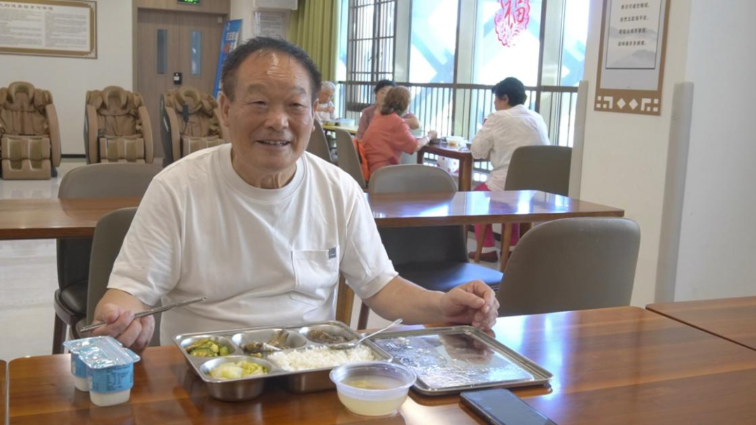 ▲李爷爷向实践团队展示长者饭堂的午餐