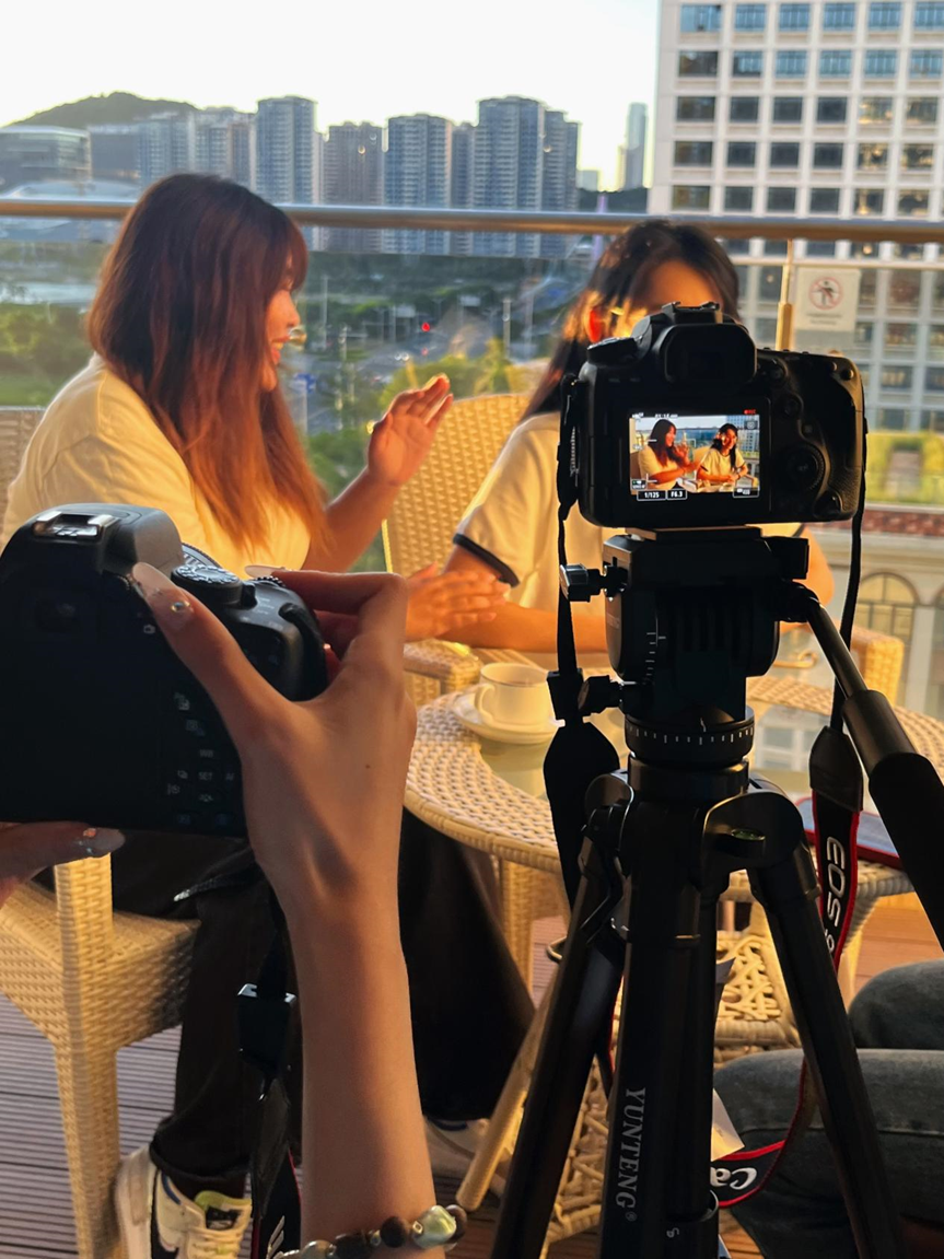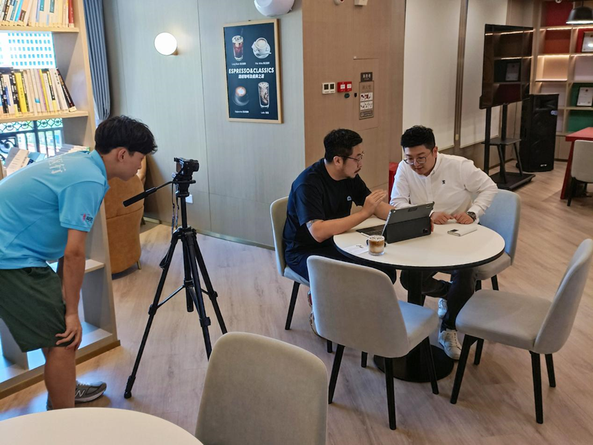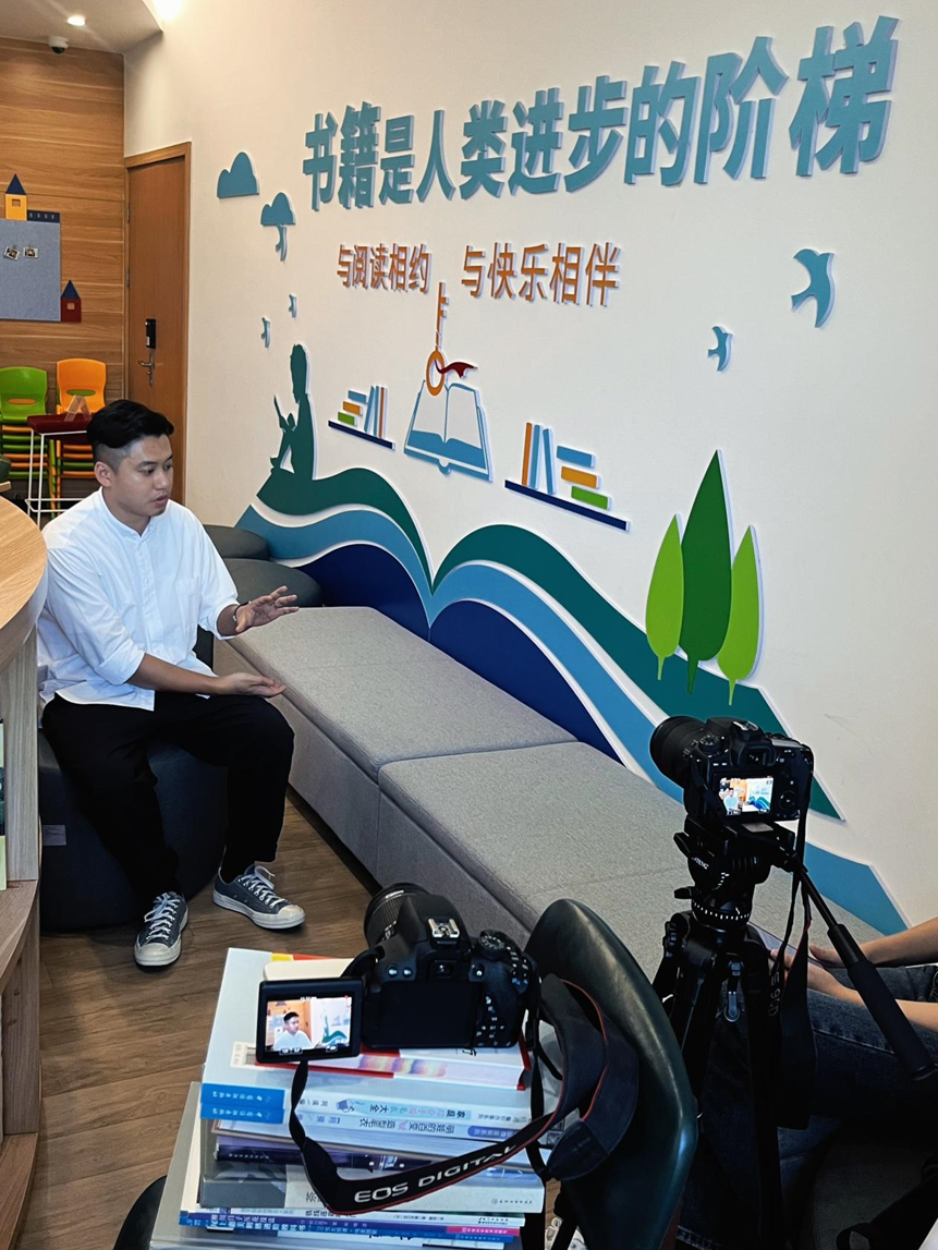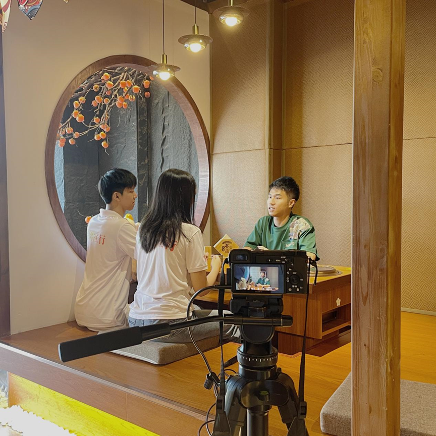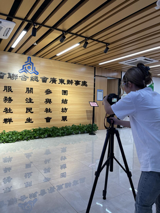 ▲实践队在AHA港澳青年孵化中心对郑益伟(右)进行拍摄