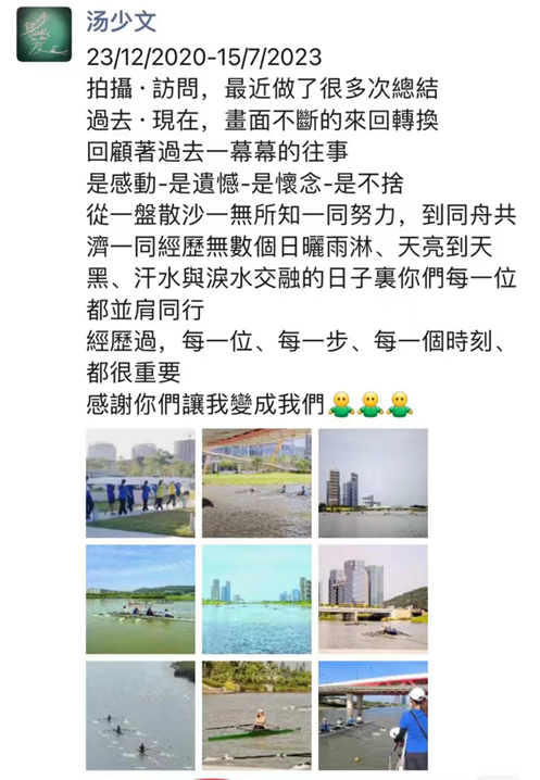 令第三小组成员印象最深刻的一段调研经历,是早晨六点,乘坐澳门青年汤少文教练的车,到赛艇中心看她带孩子们训练,亲身感受天沐河上赛艇与水波的碰撞,激情与速度的融合。汤少文向团队成员讲述了横琴天沐河和赛艇的缘分,描绘了这里是如何从一片荒地变成生机勃发的赛事基地。谈及赛艇,她眼里闪烁着兴奋的光芒,语气中也有抑制不住的激动。她告诉团队成员,年轻人须勇敢尝试才知道自己的潜力有多大。将这份热爱传递下去,让更多人感受到赛艇中的体育精神,是汤少文一直所坚持的。