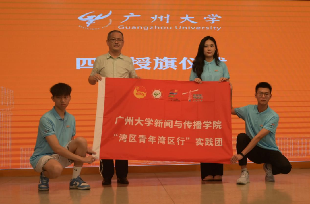 ▲广州市委宣传部李亚卫调研员为“湾区青年湾区行”实践团授旗