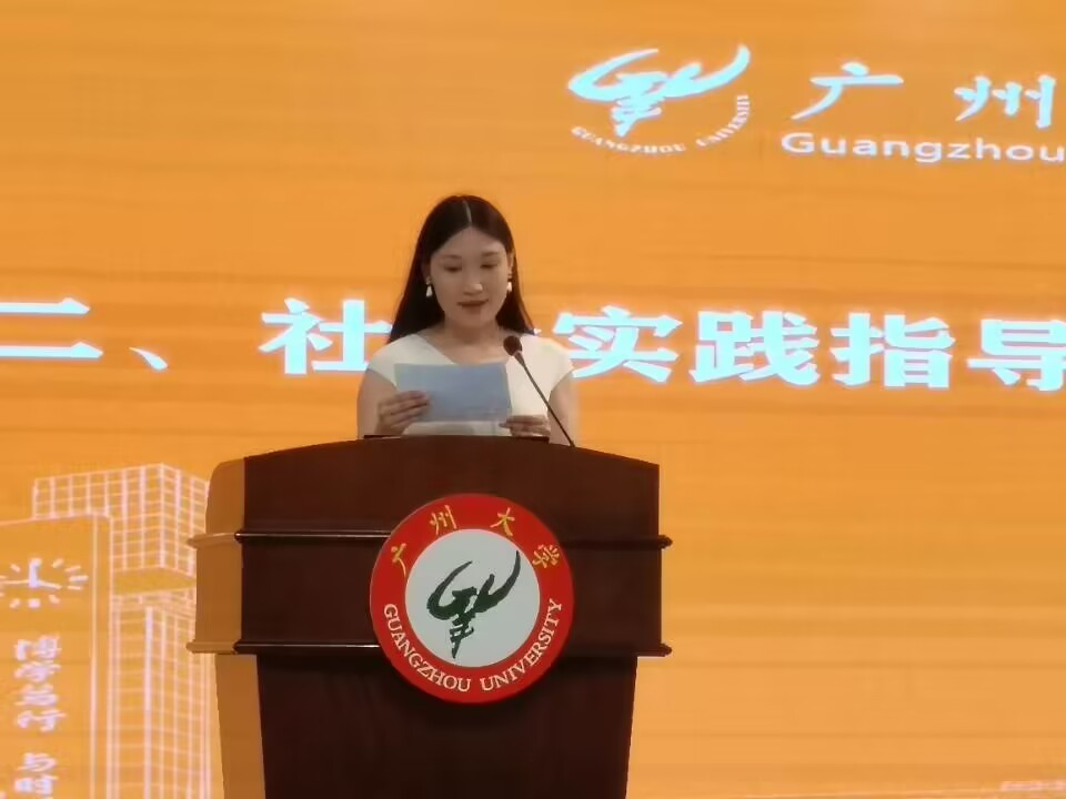 接着,社会实践指导老师代表彭雨晴老师发言。彭雨晴老师结合当前实践团队的调研筹备情况,做出“TCL”三点总结:T,即Teamwork,实践队要做到权责到位,各就各位;C,即Creative thinking, 实践队要有青年视角,网络思维,用新的视角、新的策略,新的思维方式参与到新闻报道中;L,即Leadership, 实践队要做到组织分工,快乐氛围。彭雨晴老师对同学们的暑期社会实践表示期待,希望同学们可以与指导老师一起讲好中国故事,讲好湾区故事,传播好中国声音,彰显青年的态度。