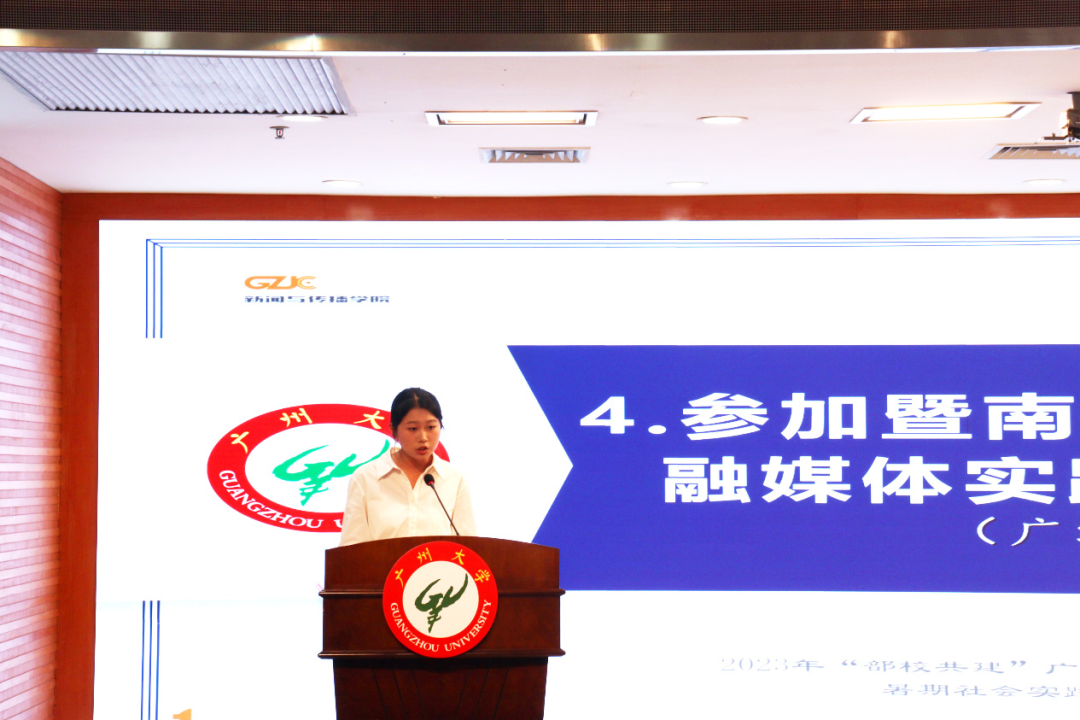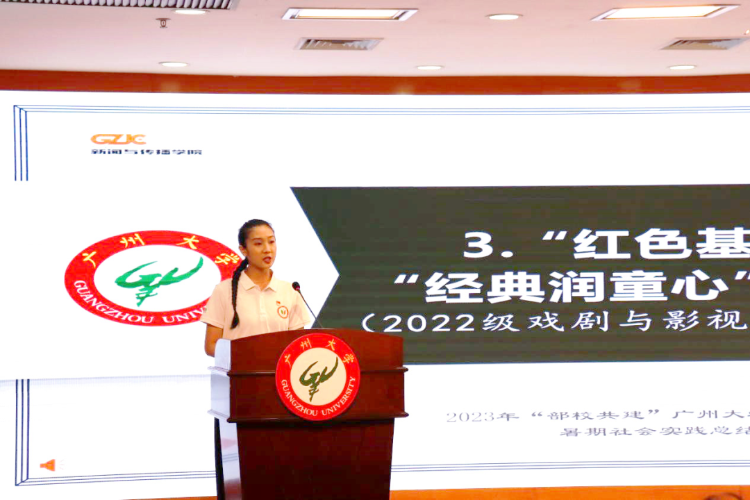 来自戏剧与影视学专业的22级硕士研究生康鑫鑫同学代表“经典润童心”与“红色基因我传承”实践团发言。她提到了三个活动的实践与成果。一是奔赴千里,只为童声琅琅。“经典润童心”实践团到娄底市桑梓镇坪底小学,指导并摄制了坪底小学省级经典诵读大赛的参赛作品《我有祖国,我有母语》;二是深入调研,当红色故事讲解员。“红色基因我传承”实践团走进毛泽东同志的故乡——韶山,深入挖掘红色文化内涵,创作了音视频作品助力红色文化传播;三是继往开来,做优秀文化传承人。实践团依托做爱自拍