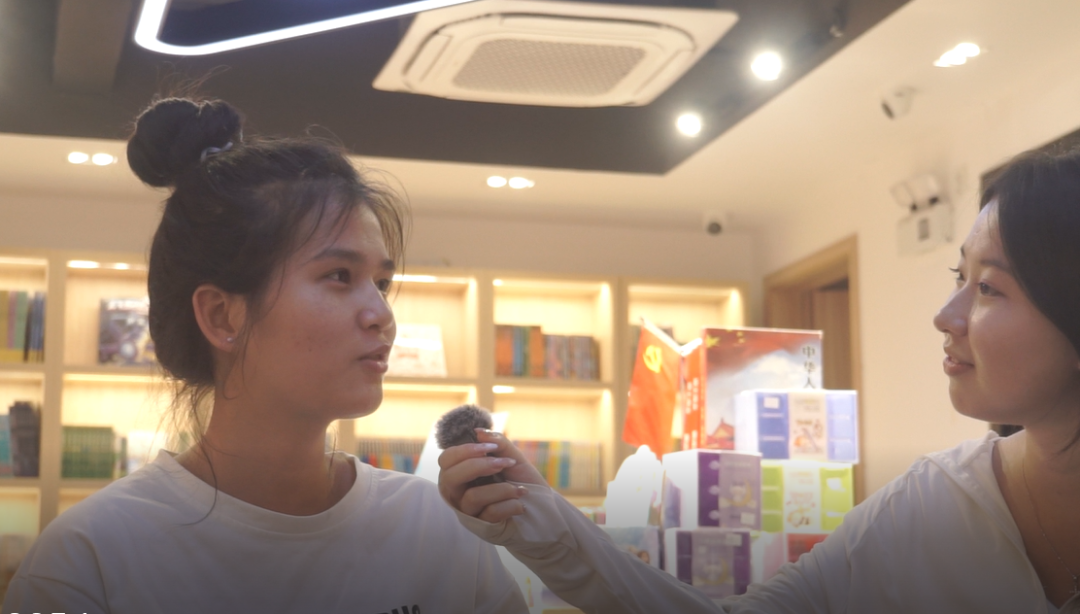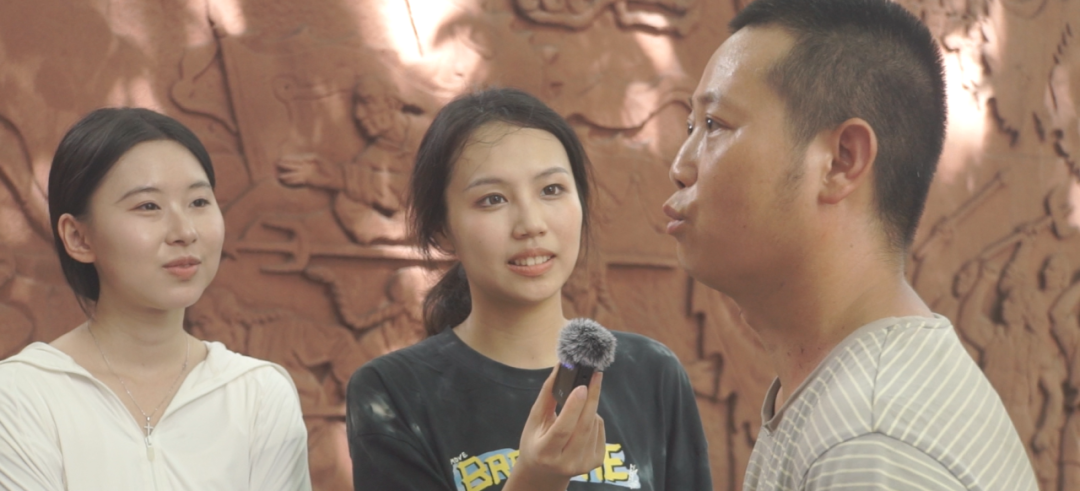 播音231班王璐嘉在三元里抗英大街采访当地的中学生