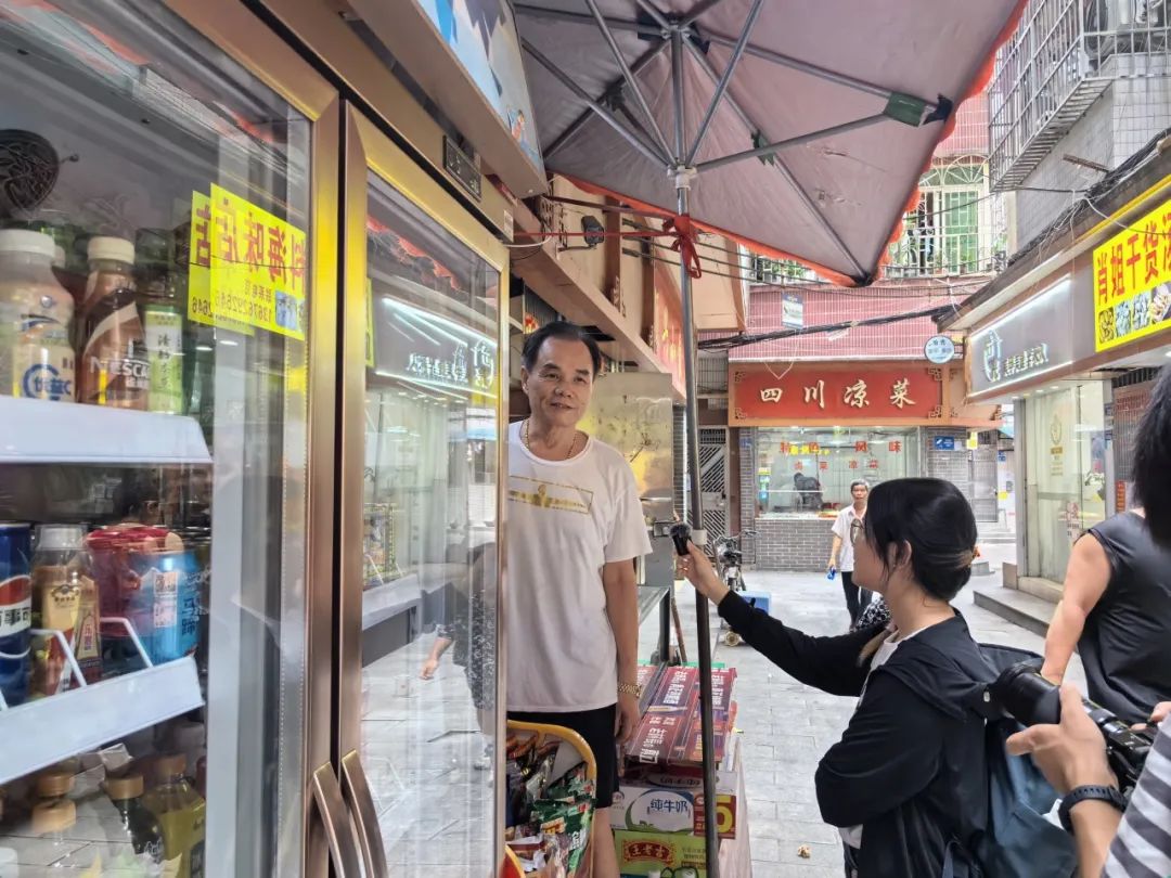 广编222班练蓓琳在三元里抗英大街采访当地的个体经营户