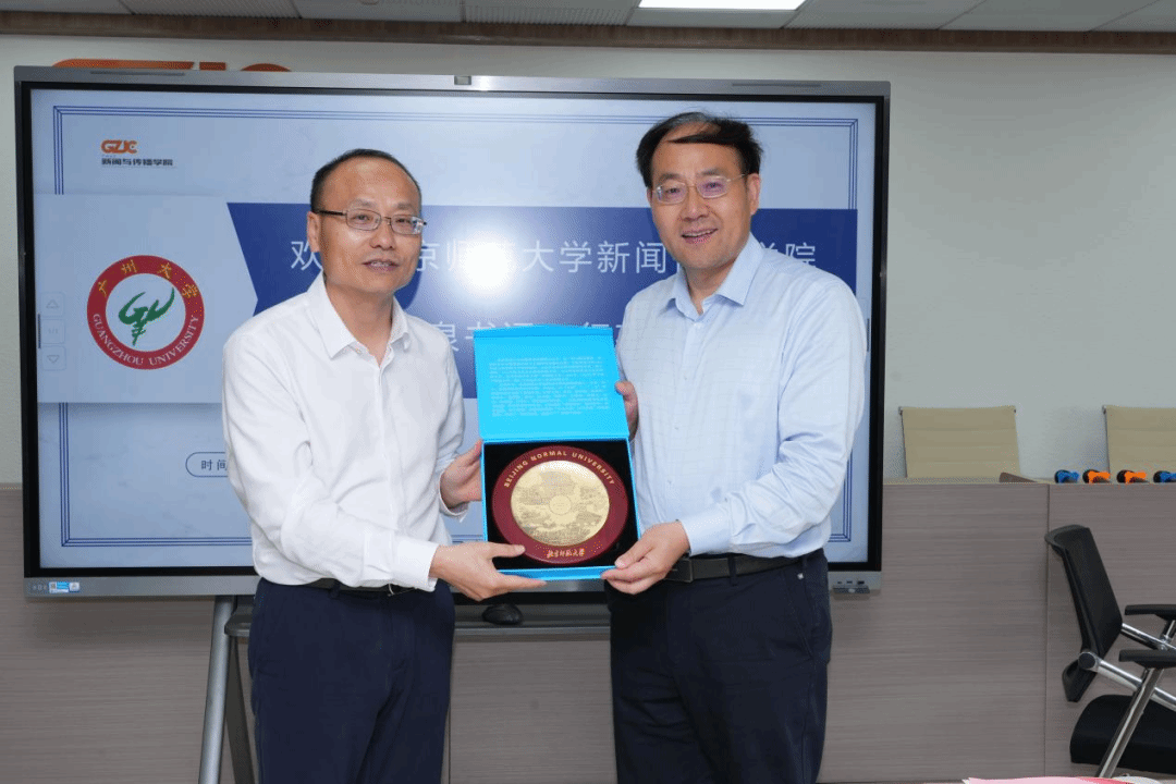 党委书记邹军,副院长张爱凤、张杰、夏清泉,党委副书记方建平,播音与主持艺术系党支部书记苏凡博,网络与新媒体系主任张灵敏,网络与新媒体系教师徐来,综合办主任高莹莹,实验室主任张化东等与北师大同行进行了交流和座谈。