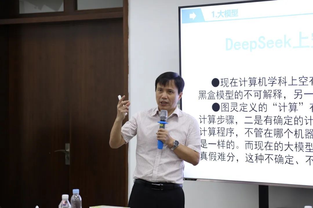 云宏人工智能研究院院长蓝云作了题为《DeepSeek、智能体与未来传播》的报告。他从当下火热的大模型DeepSeek切入,指出“AI幻觉”是一种低概率、高风险事件,在达到算力边界、数据库边界、话题清晰度和敏感度边界时容易出现。